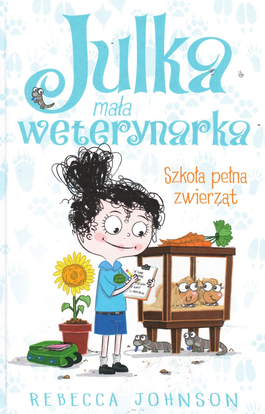 Edukacyjna seria o przygodach Julki, która pomagając mamie weterynarce, zdobywa wiedzę o zwyczajach wielu gatunków zwierząt. „Cześć! Jestem Julka. Mam dziesięć lat. I jestem już prawie weterynarką! Moja mama leczy zwierzęta, a ja przyglądam się jej pracy i często w niej pomagam. Obie z moją najlepszą przyjaciółką, Chelsea, kochamy zwierzęta”. Nasza szkoła jest świetna - mamy tu zwierzęta! W naszej sali biologicznej mieszkają świnki morskie, jaszczurki, rybki i owady. W tym tygodniu mamy zastępstwo z panią Fine, która niewiele wie o zwierzętach. Na szczęście my wiemy bardzo dużo (jak to dobrze być prawie weterynarką!) [opis wydawcy].