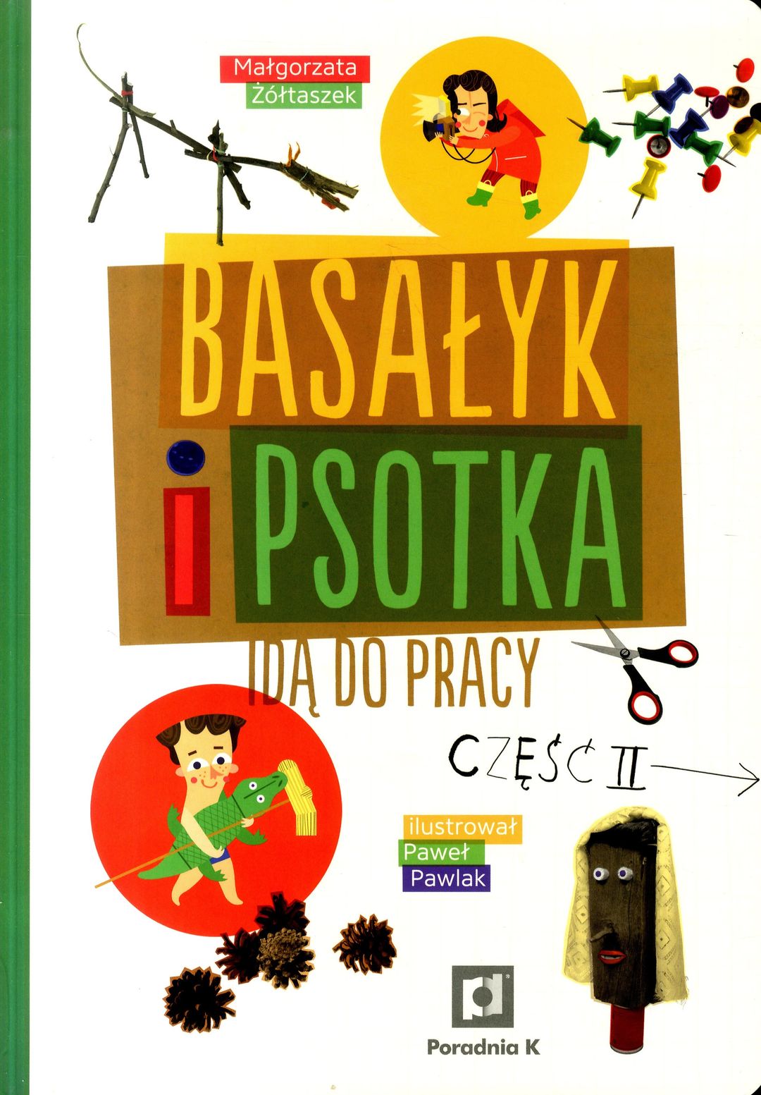 Czy praca może być zabawą? O tak, jeśli w dorosłe zawody bawią się Basałyk i Psotka. W drugiej części "zawodowych" przygód rodzeństwo jedzie z dziadkami na wakacje. Z nowymi kolegami bawi się w galerie sztuki, prowadzi śledztwo i kręci program telewizyjny. Dzieci dyskutują także, co wolno chłopakom, a co dziewczynom i czy praca w domu to praca. Na końcu każdego rozdziału znajduje się przydatny słowniczek najważniejszych pojęć związanych z każdym z zawodów.